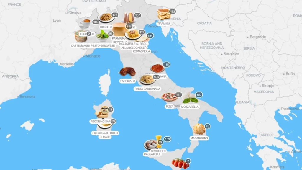 Fonti come Il Sole 24 Ore, Forbes e una ricerca di Deloitte, indicano che la cucina italiana rappresenta nel 2023 il 19% del mercato mondiale, con un giro d’affari stimato intorno ai 230 miliardi di euro. Un primato importante considerando la dimensione dell’Italia rispetto al resto del mondo.